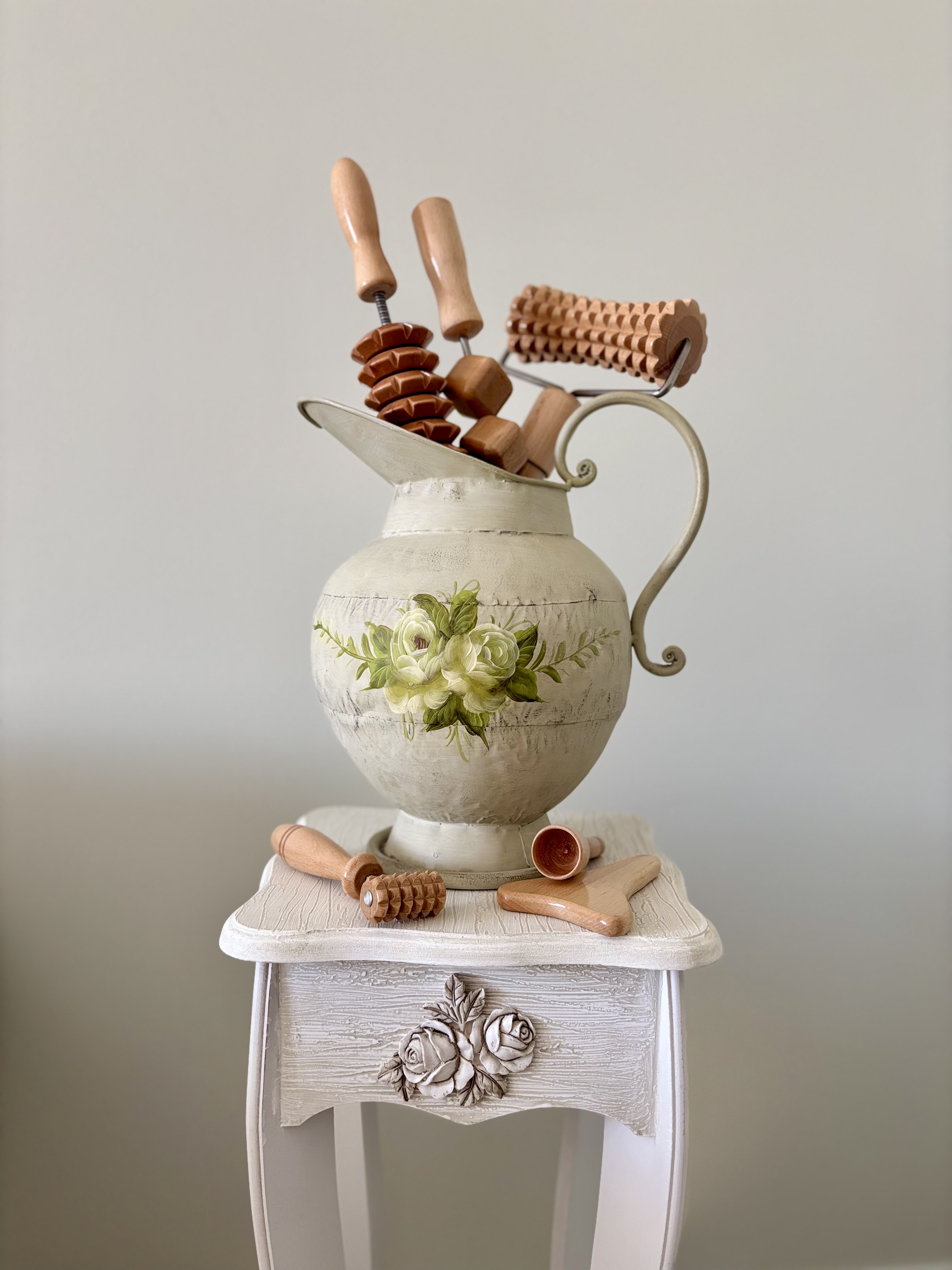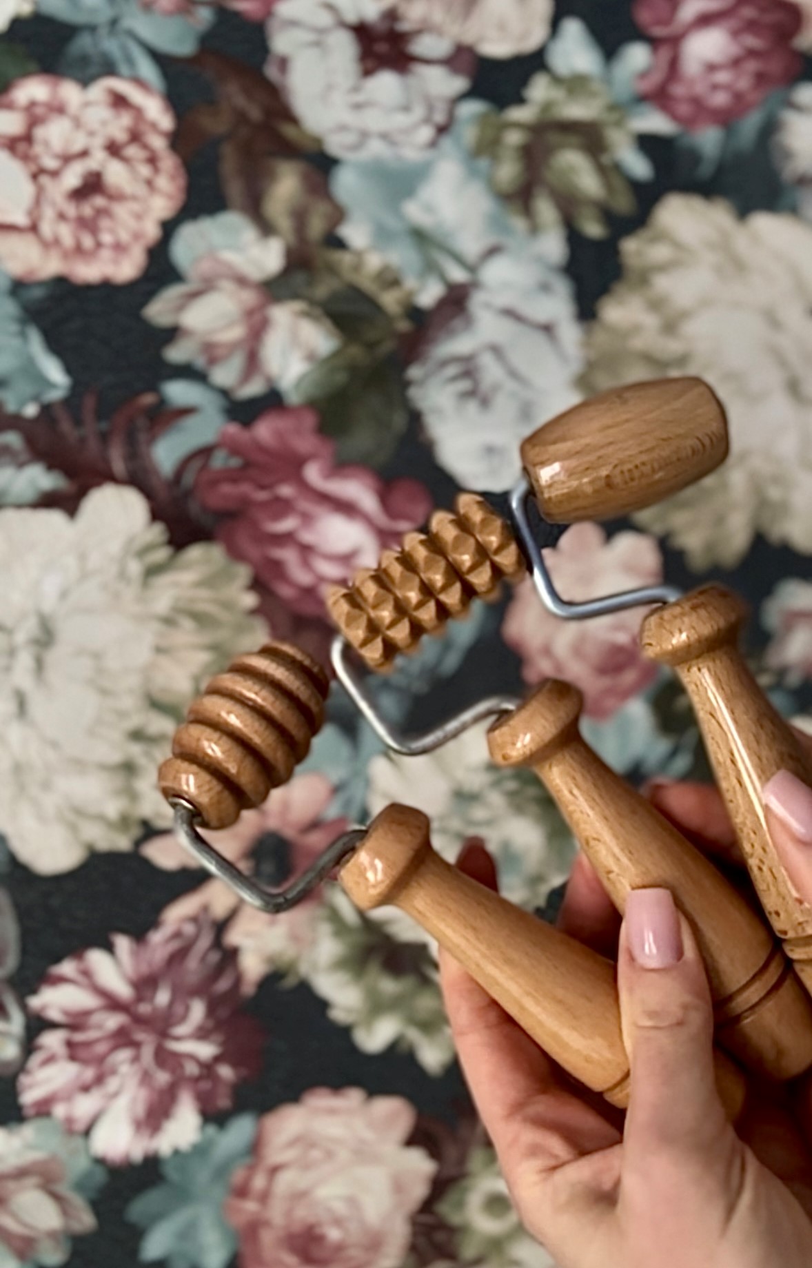 Súčasťou školenia sú aj drevné nástroje s nimi detailná práca. Naučíte sa správne techniky používania jednotlivých valcov a pomôcok, pochopíte ich funkciu a zistíte, ako ich efektívne kombinovať pre dosiahnutie maximálnych výsledkov. Každý nástroj má svoje špecifické využitie a práve správna technika je rozhodujúca.