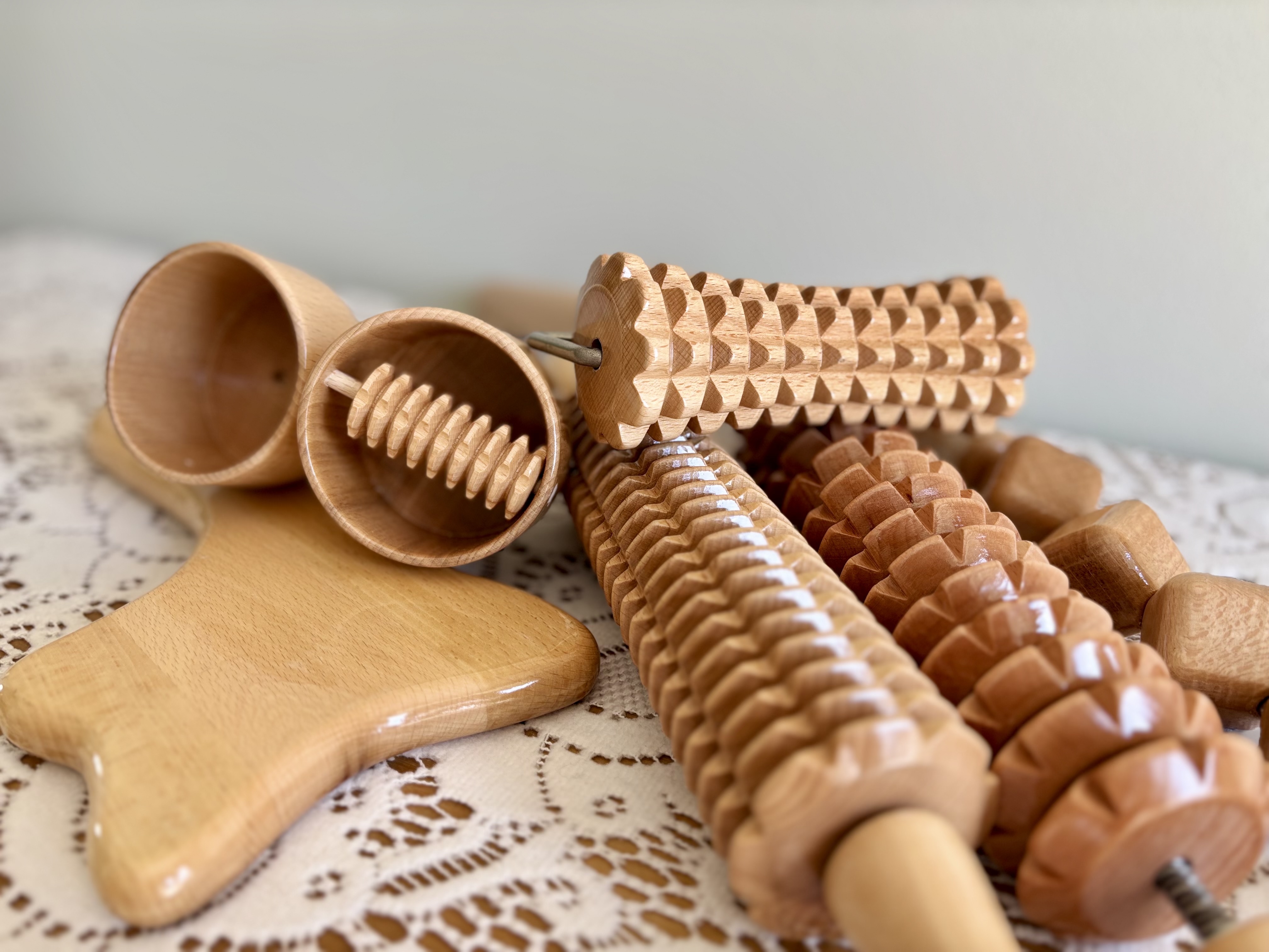 K mojim kurzom maderoterapie automaticky získavate aj drevené valčeky, s ktorými budete pracovať. Dôraz kladiem na kvalitu, preto som zvolila nástroje vyrobené z bukového dreva s lakovanou povrchovou úpravou, ktorá je veľmi dôležitá z hľadiska hygieny a jednoduchého čistenia.